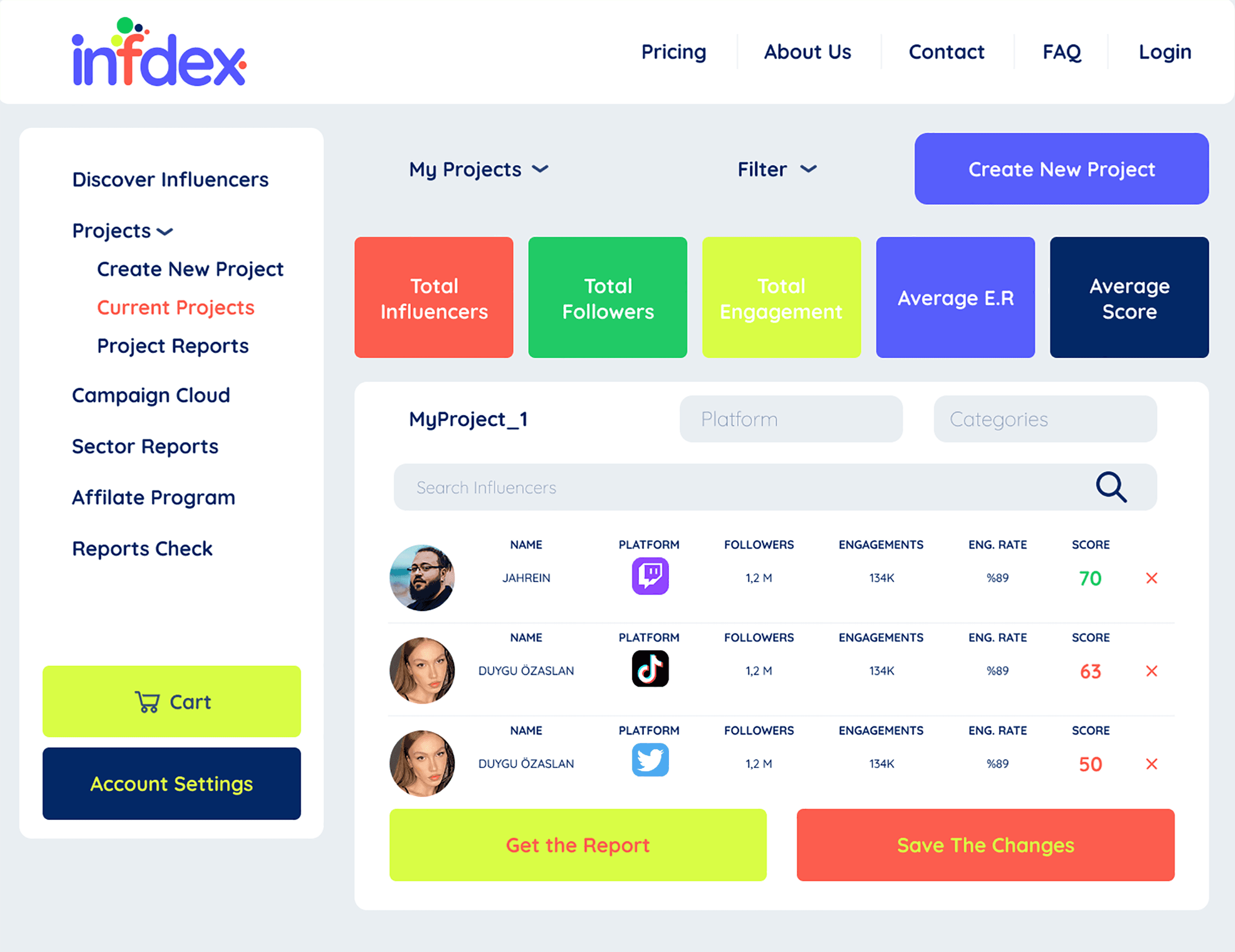 The Discover page enables users to find influencers quickly through flexible filtering options.